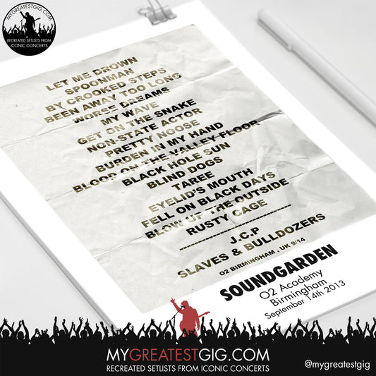 Soundgarden - Birmingham - Sep 14th 2013 Recreated Setlist Poster