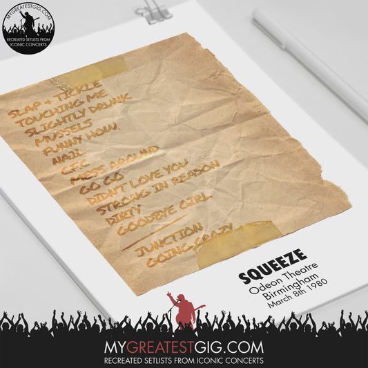 Squeeze - Birmingham - Mar 8th 1980 Recreated Set List Poster