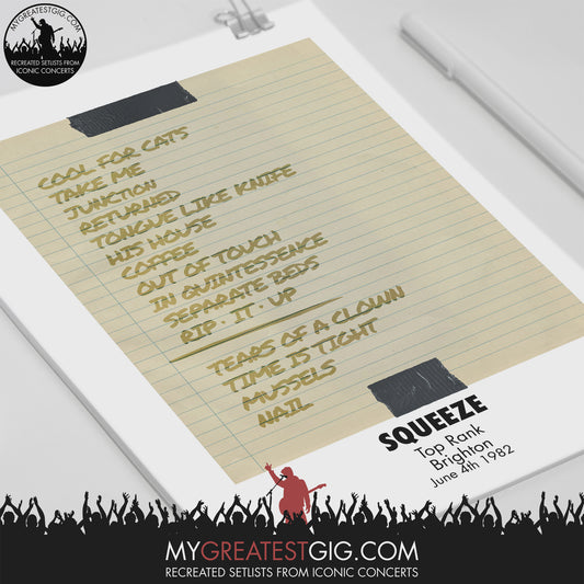 Squeeze - Brighton - Jun 4th 1982 Recreated Set List Poster