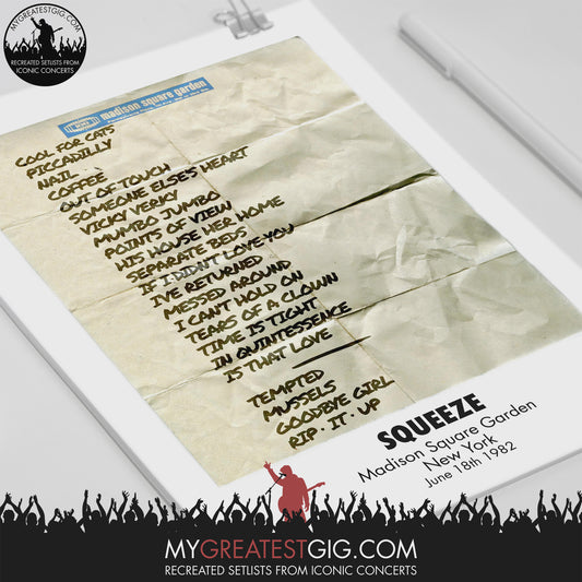 Squeeze - New York - Jun 18th 1982 Recreated Set List Poster