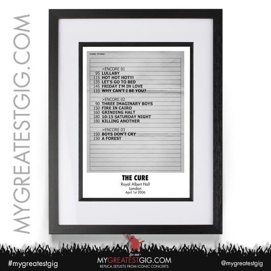 The Cure - Royal Albert Hall - April 1st 2006 Replica Setlist Poster