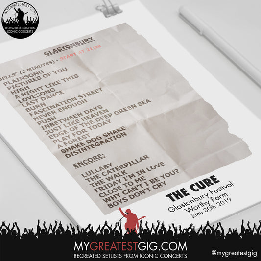The Cure - Glastonbury Festival - Jun 30th 2019 Recreated Set List Poster