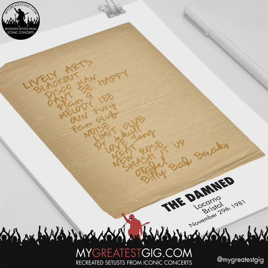 The Damned - Bristol - November 29th 1981 Recreated Setlist Poster