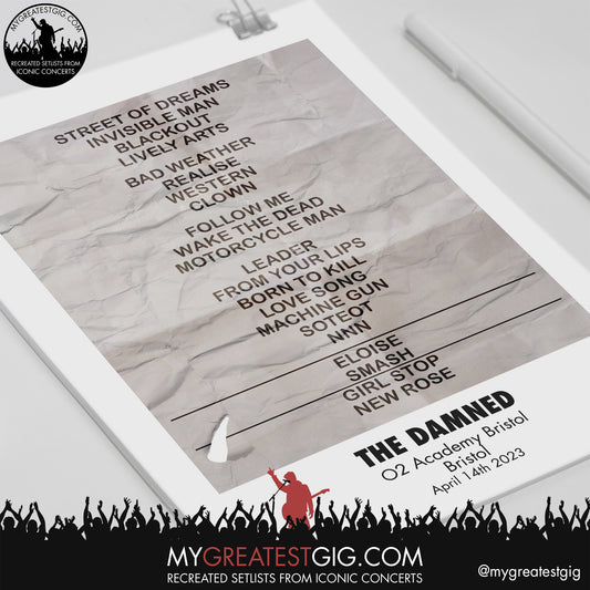 The Damned - Bristol - April 14th 2023 Recreated Setlist Poster