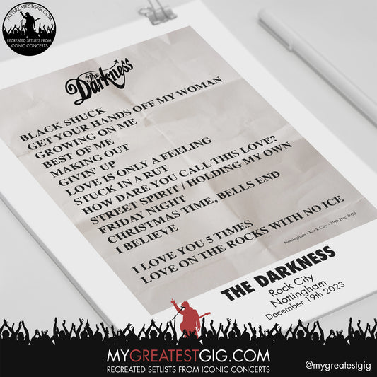 The Darkness - Nottingham - December 19th 2023 Recreated Setlist Poster