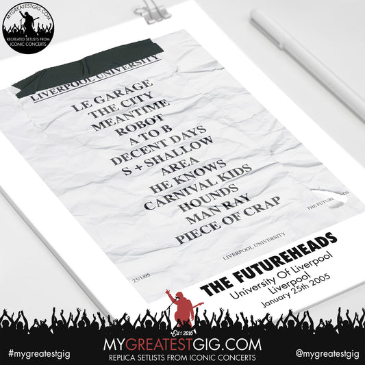 The Futureheads - Liverpool - January 25th 2005 Replica Setlist Poster