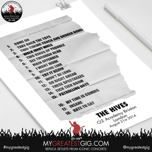 The Hives - London - August 21st 2014 Replica Setlist Poster