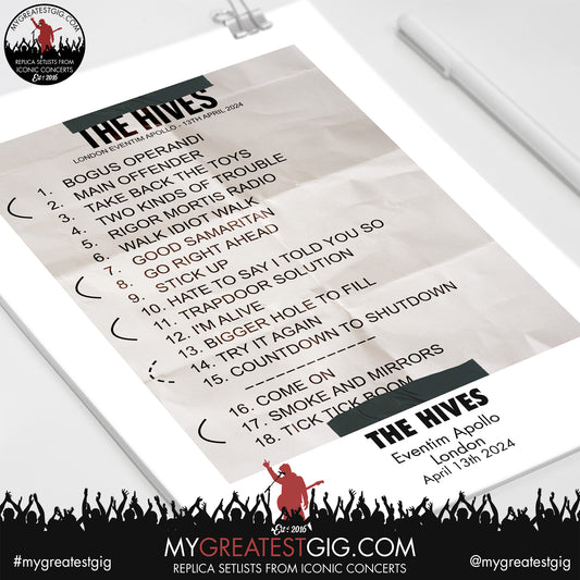 The Hives - London - April 13th 2024 Replica Setlist Poster