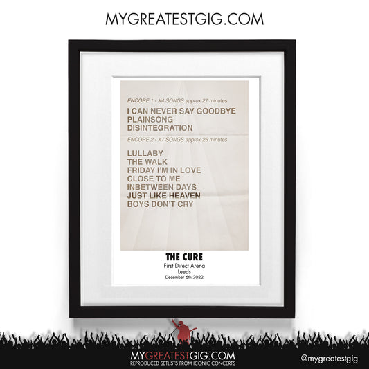 The Cure - Leeds - Dec 6th 2022 Recreated Setlist Poster