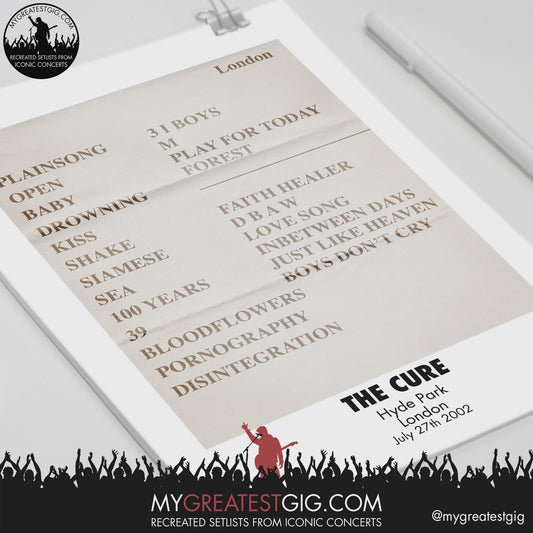 The Cure - London - Jul 27th 2002 Recreated Setlist Poster