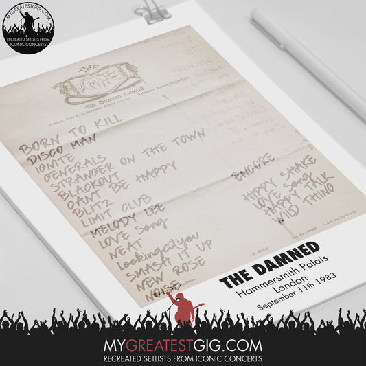 The Damned - London - Sep 11th 1983 Recreated Setlist Poster