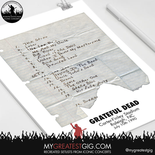 The Grateful Dead - Raleigh - Jul 10th 1990 Recreated Setlist Poster
