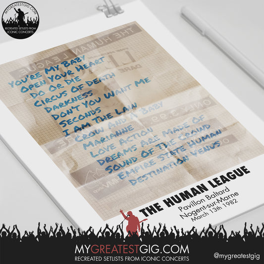 The Human League - France -Mar 13th 1982 Recreated Setlist Poster