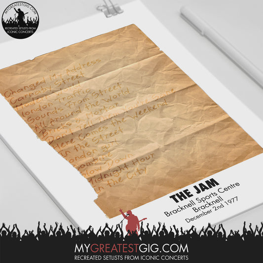The Jam - Bracknell - Dec 2nd 1977 Recreated Set List Poster