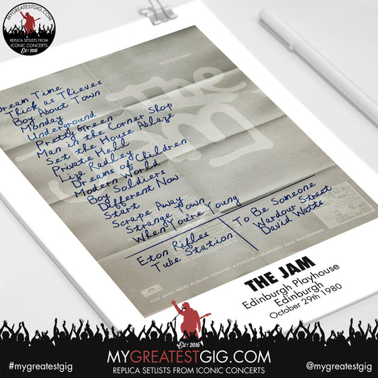 The Jam - Edinburgh - October 29th 1980 Replica Setlist Poster
