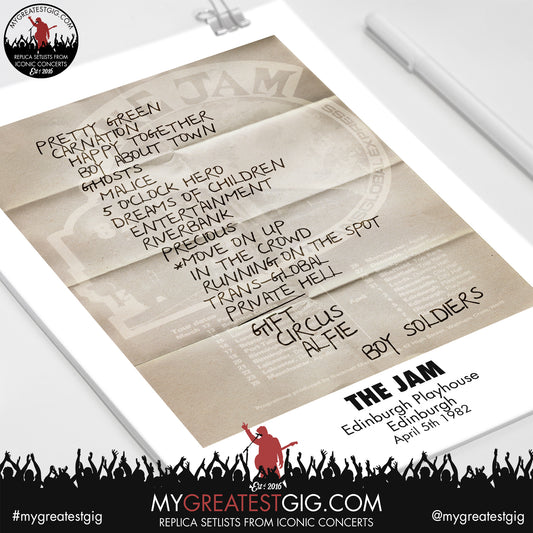 The Jam - Edinburgh - April 5th 1982 Replica Setlist Poster