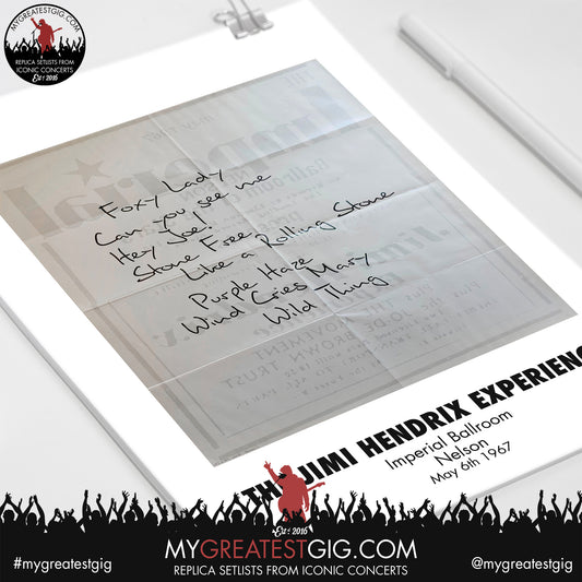 The Jimi Hendrix Experience - Nelson - May 6th 1967 Replica Setlist Poster