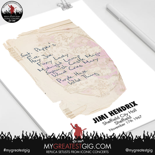 The Jimi Hendrix Experience - Sheffield - November 17th 1967 Replica Setlist Poster