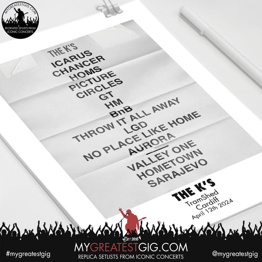 The K's - Cardiff - April 12th 2024 Replica Setlist Poster