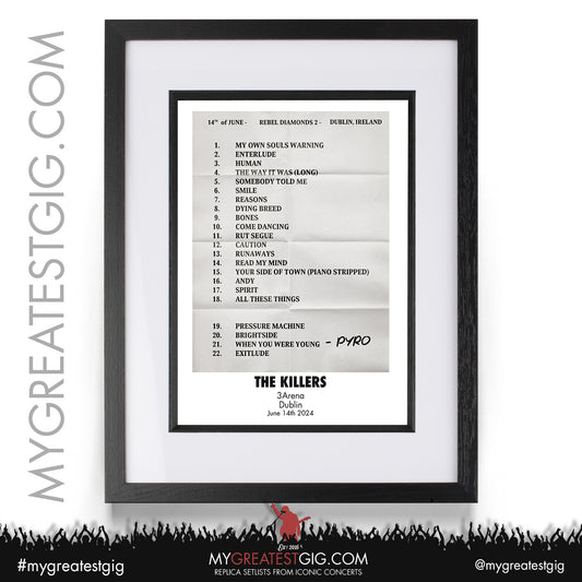 The Killers - Dublin - June 12th/14th/15th 2024 Replica Setlist Poster