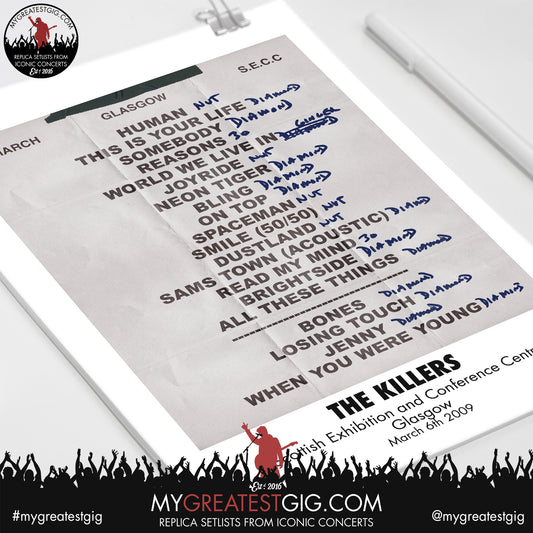 The Killers - Glasgow - March 6th 2009 Replica Setlist Poster