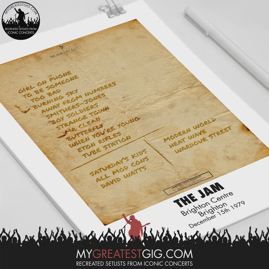 The Jam - Brighton - Dec 15th 1979 Recreated Set List Poster