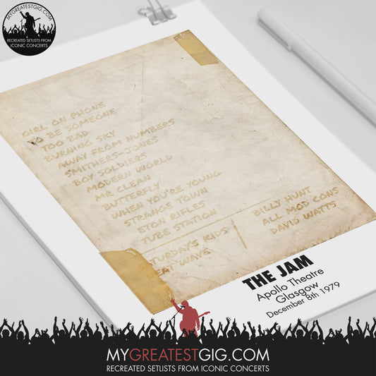 The Jam - Glasgow - Dec 8th 1979 Recreated Set List Poster
