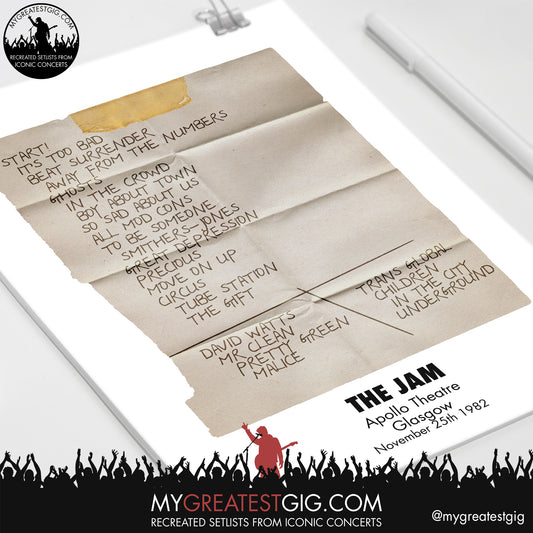 The Jam - Glasgow - Nov 25th 1982 Recreated Setlist Poster