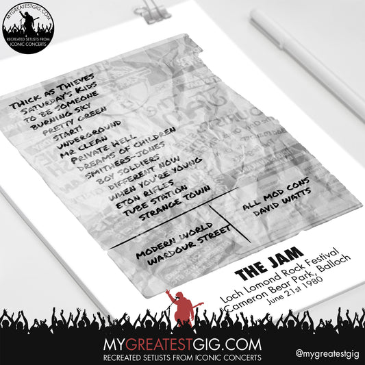 The Jam - Loch Lomond - Jun 21st 1980 Recreated Setlist Poster