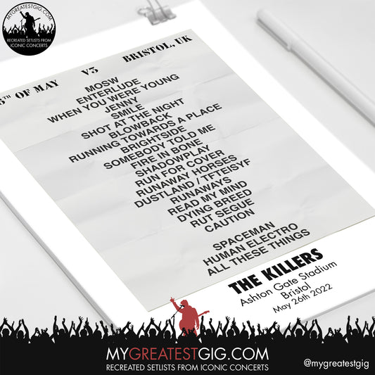 The Killers - Bristol - May 26th 2022 Recreated Setlist Poster