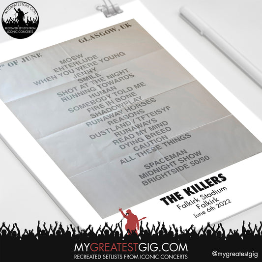 The Killers - Falkirk - Jun 6th 2022 Recreated Setlist Poster