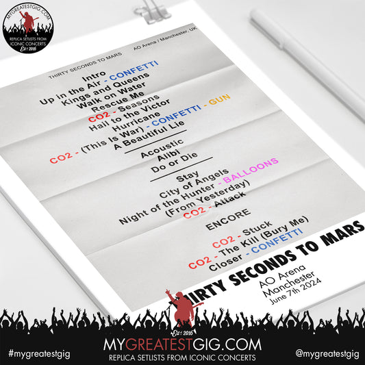 Thirty Seconds To Mars - Manchester - June 7th 2024 Replica Setlist Poster