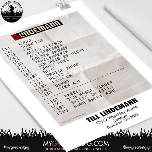 Till Lindemann - London - December 12th 2023 Replica Setlist Poster