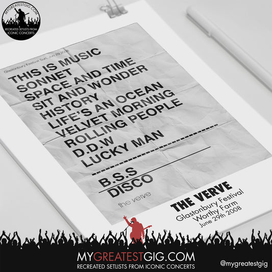The Verve - Glastonbury Festival - June 29th 2008 Recreated Setlist Poster