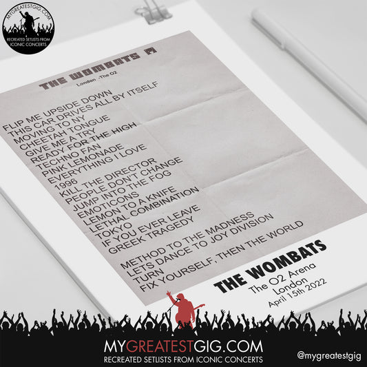The Wombats - London - April 15th 2022 Recreated Setlist Poster