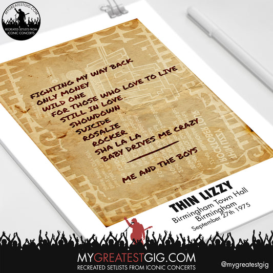 Thin Lizzy - Birmingham - Sep 27th 1975 Recreated Setlist Poster