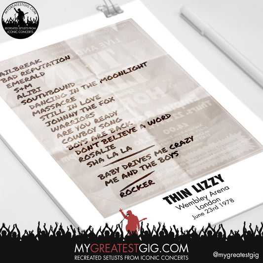 Thin Lizzy - London - Jun 23rd 1978 Recreated Setlist Poster