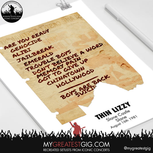 Thin Lizzy - Slane Castle - Aug 16th 1981 Recreated Setlist Poster