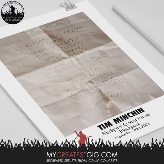 Tim Minchin - Blackpool - Nov 20th 2021 Recreated Set List Poster
