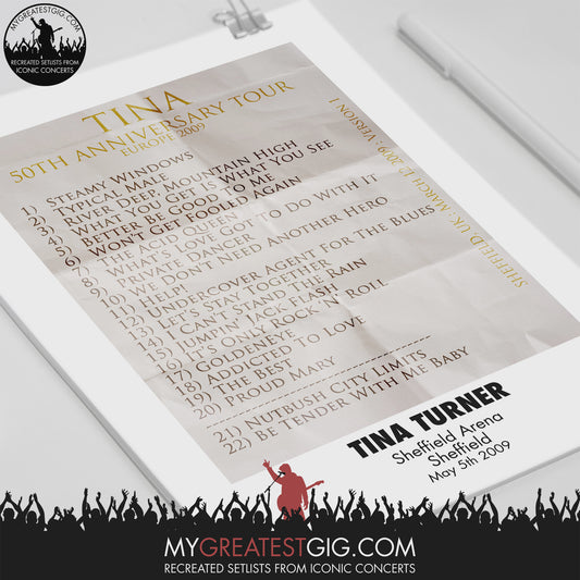 Tina Turner - Sheffield - May 5th 2009 Recreated Setlist Poster