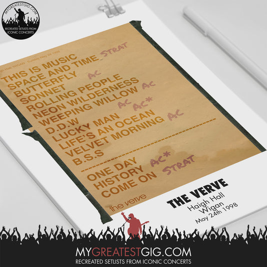 The Verve - Wigan - May 24th 1998 Recreated Setlist Poster
