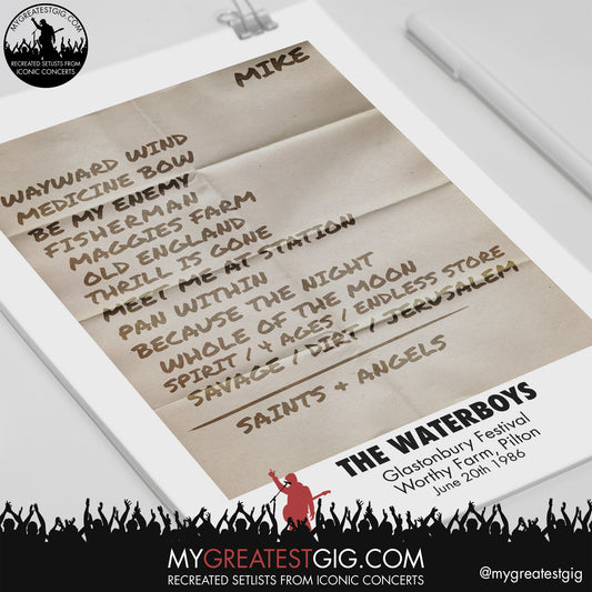 The Waterboys - Glastonbury Festival - June 20th 1996 Recreated Setlist Poster