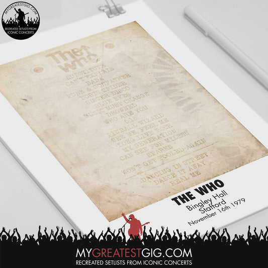 The Who - Stafford - Nov 16th 1979 Recreated Set List Poster