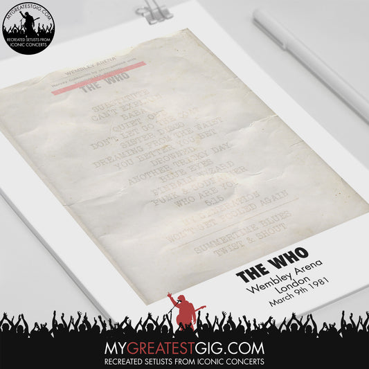 The Who - London - Mar 9th 1981 Recreated Set List Poster
