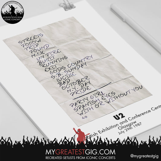 U2 - Glasgow - July 29th 1987 Recreated Setlist Poster