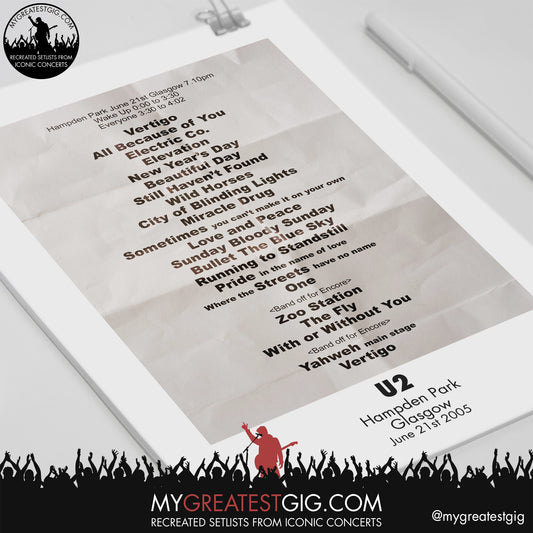 U2 - Glasgow - June 1sth 2005 Recreated Setlist Poster