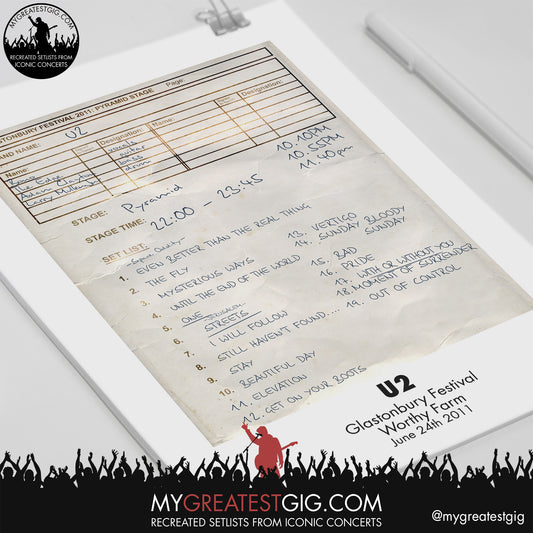 U2 - Glastonbury Festival - June 24th 2011 Replica Setlist Poster