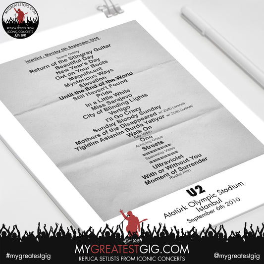 U2 - Istanbul - September 6th 2010 Replica Setlist Poster