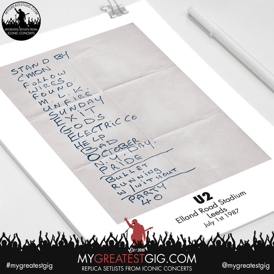 U2 - Leeds - July 1st 1987 Replica Setlist Poster