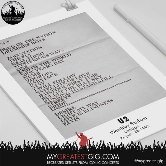 U2 - London - August 12th 1993 Recreated Setlist Poster
